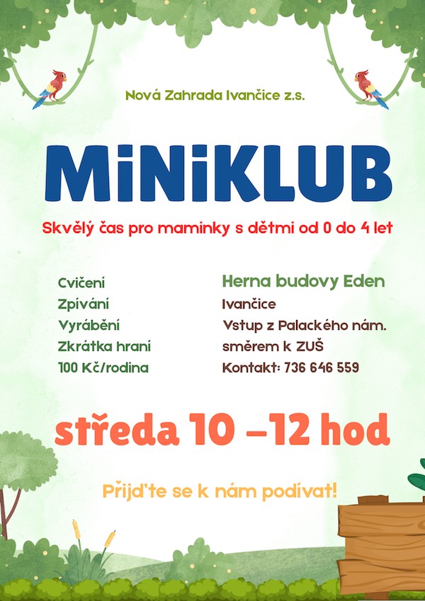 Středa 10-12 - MiNiKLUB pro maminky s dětmi 0-4 roky, více info na tel. 736 646 559